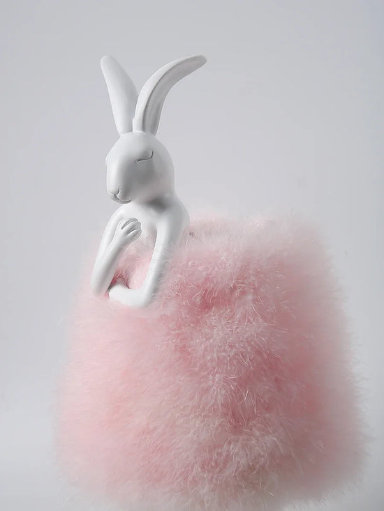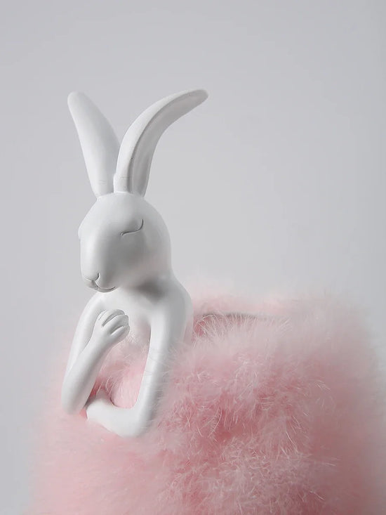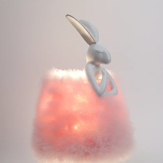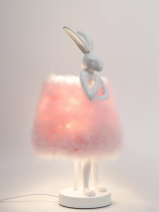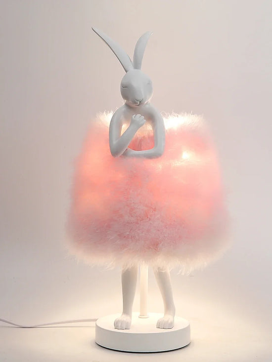 Bring a soft and warm ambiance to your home with this original rabbit-shaped bedside lamp . Made of durable resin , it is adorned with delicate feathers that create a soft and soothing light. Perfect for a lighting area of 5 to 10 m² , this designer light is ideal for children's bedrooms or cozy spaces.